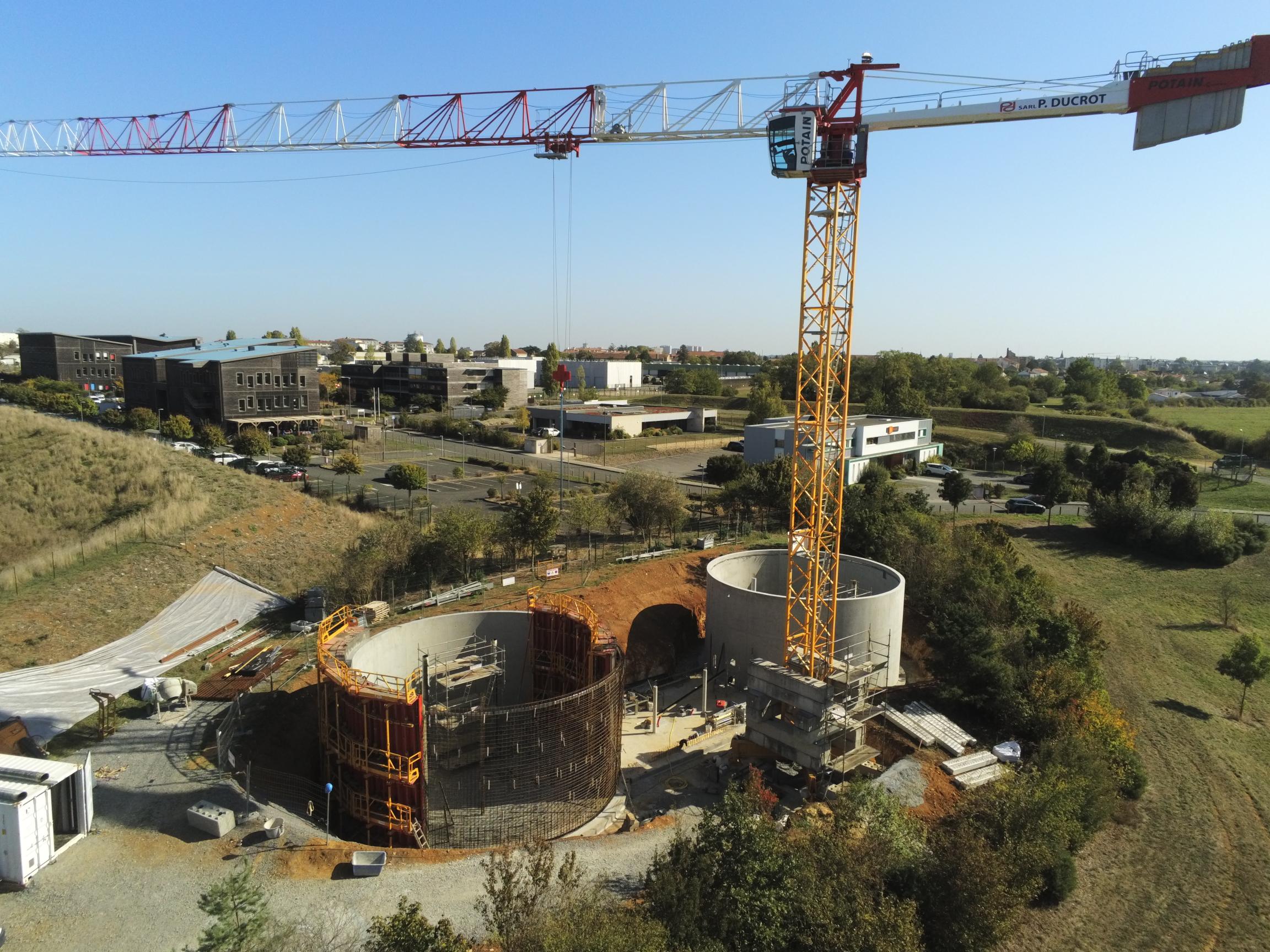 Travaux réalisés de septembre à décembre, construction de 2 réservoirs d’eau potable de 500 m3. Le génie civil est maintenant terminé, place aux essais en eau des bassins.